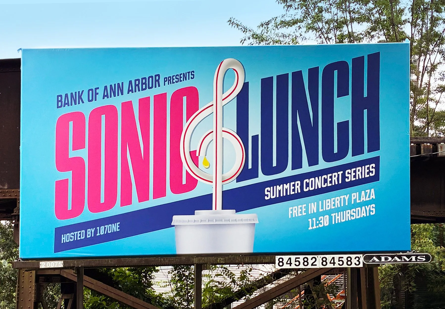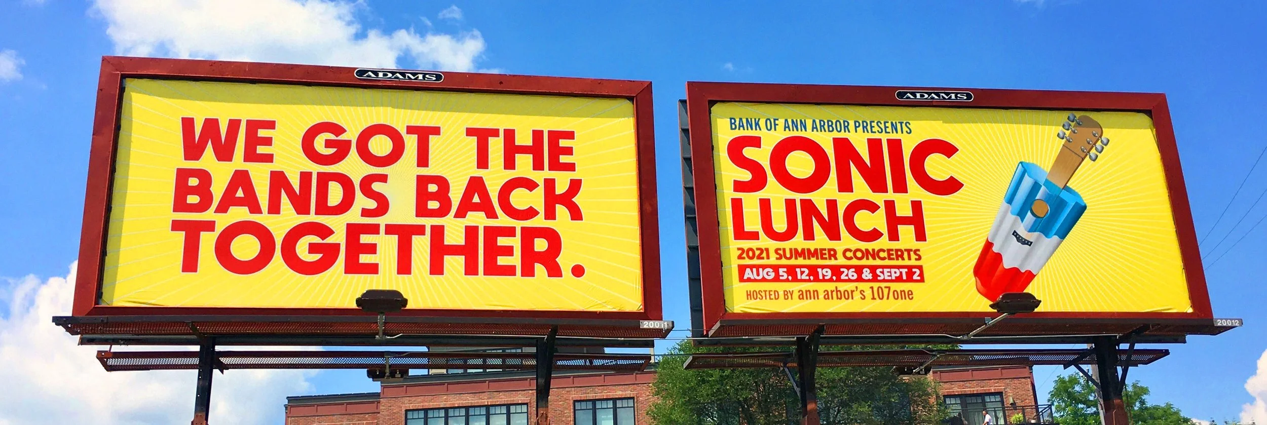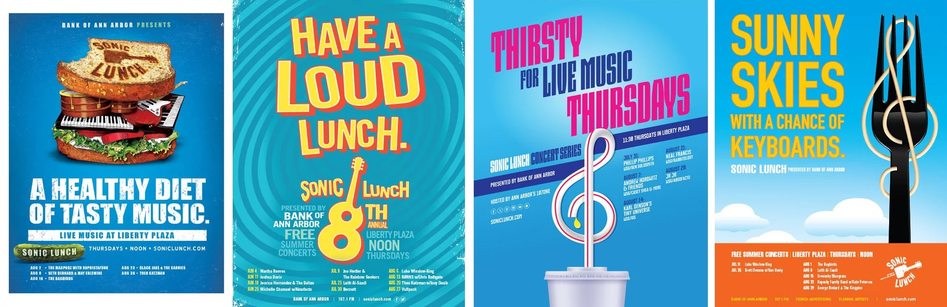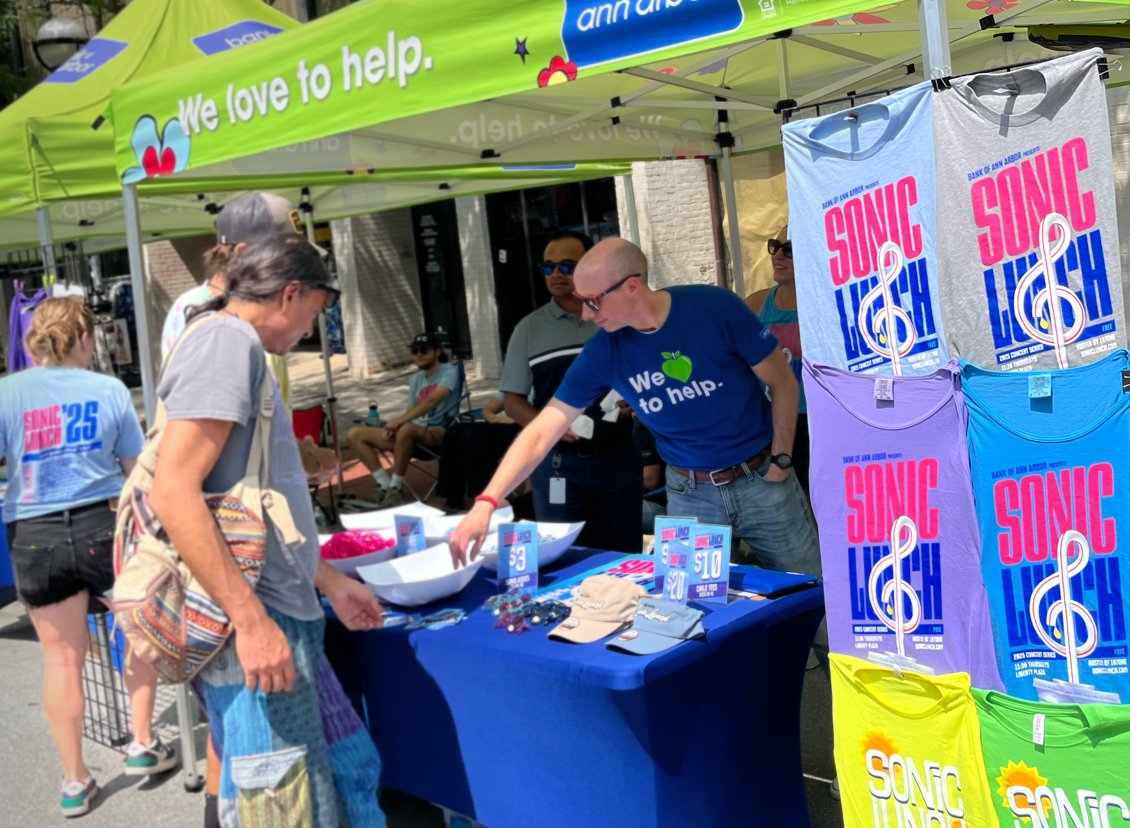 Naming things is difficult. How do you pick the best one or two words in the English language to sum up the essence of a brand, product, or in this case, summer concert series? We won’t reveal our secrets, but it’s mainly hard work. When we came up with “Sonic Lunch,” it was so unanimously loved internally, it was the only name we presented to Bank of Ann Arbor. Fortunately, they loved it, too. “Sonic Lunch” captures both the live music and the midday start time, and the unexpected pairing of the two words makes it stick.