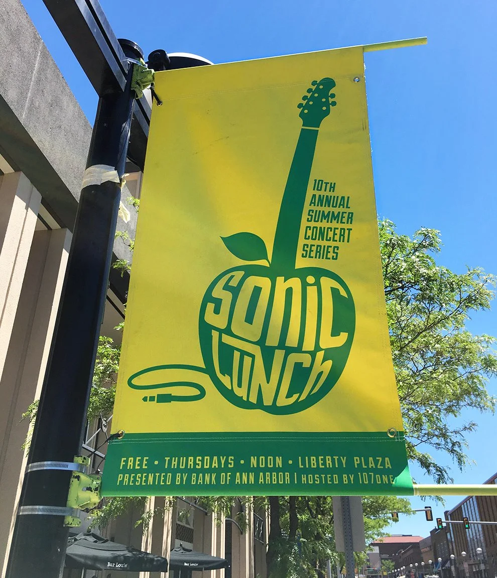 Presented by Bank of Ann Arbor, Sonic Lunch’s outdoor stage hosts a diverse lineup of local and national bands, attracting crowds of all ages. We were there from the beginning, naming the event and creating a wide variety of materials to support it. And every year, we get the band back together and create a totally refreshed design.